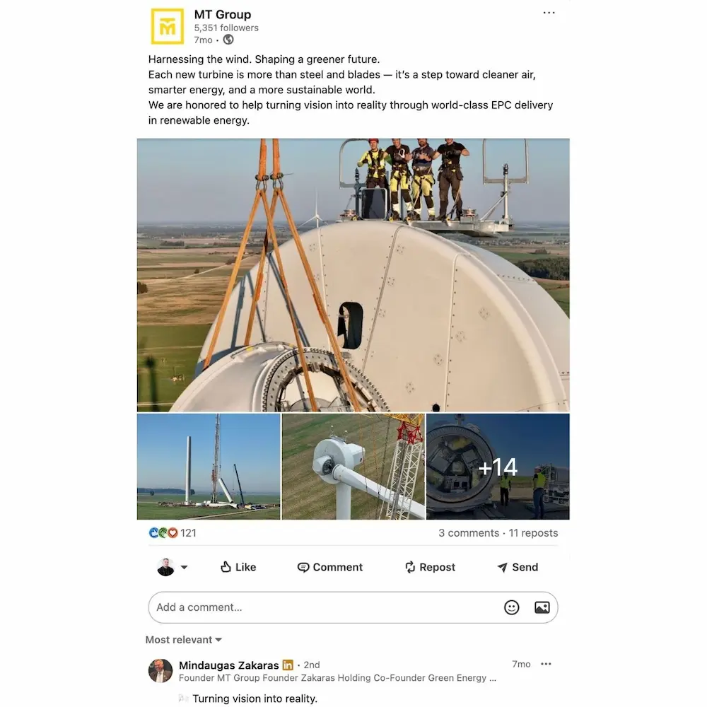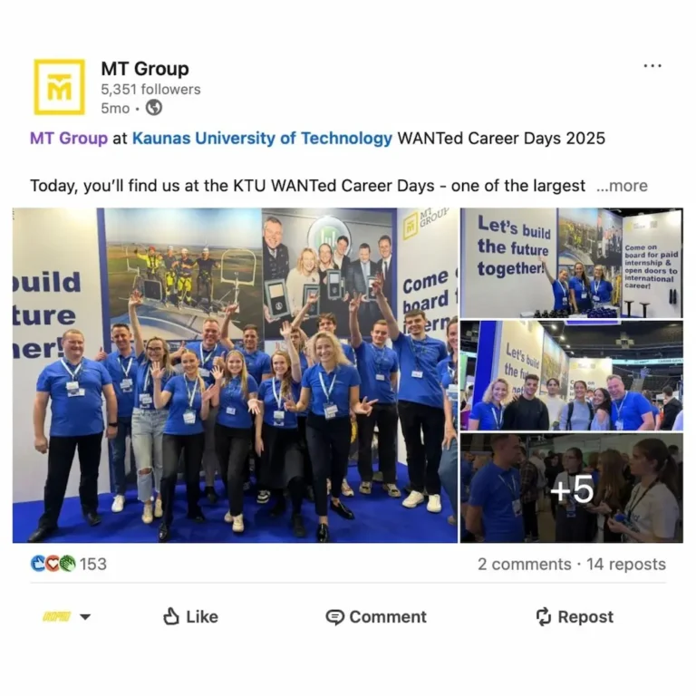 Sukurtas turinys integruotas į MT Group LinkedIn komunikaciją, kur naudojamas projektų pristatymui ir įmonės kompetencijos parodymui.