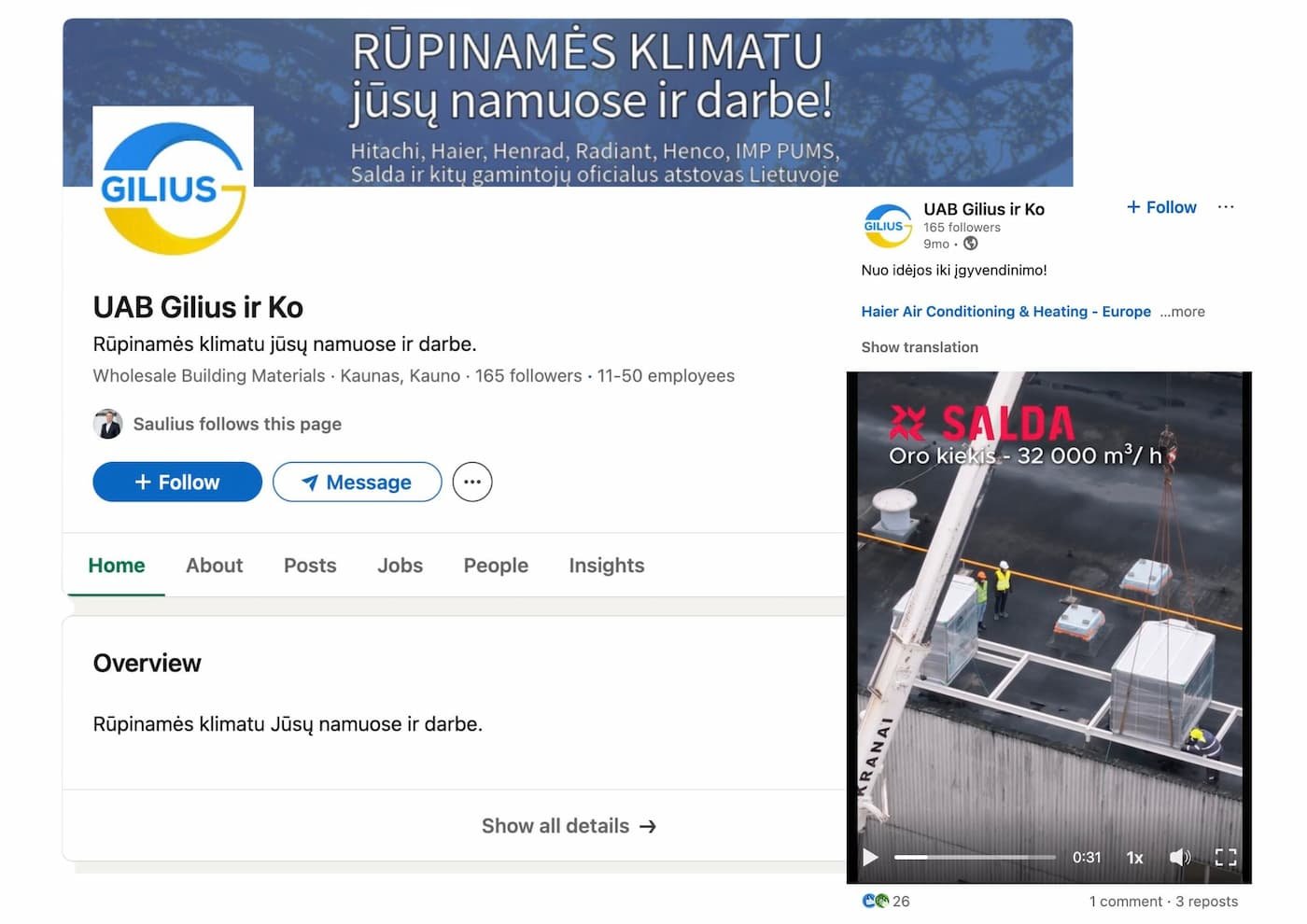 Sukurtas vaizdo turinys buvo pritaikytas LinkedIn komunikacijai, siekiant aiškiai pristatyti projekto mastą ir techninį sprendimą.